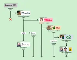 8chan (or Infinitechan, later 8kun) is a primarily English-language imageboard, although it has sub-boards dedicated to other languages. Just like 4chan, 8chan is based on posting pictures and discussion anonymously, but unlike 4chan, 8chan lets its users decide what they want to discuss by allowing any user to create their own board dedicated to any topic, a concept first made popular by news bulletin boards like Reddit. 8chan also claims to have a strong dedication to freedom of speech and allows all content—so long as the discussion and board creation abides by United States law.[24] However, local moderators enforce the rules of their own boards and may delete posts as they see fit. It is currently partnered with the Japanese textboard 2channel.