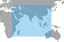 The Indian Regional Navigation Satellite System (IRNSS), with an operational name of NavIC (acronym for Navigation with Indian Constellation; also, nāvik 'sailor' or 'navigator' in Indian languages),[2] is an autonomous regional satellite navigation system that provides accurate real-time positioning and timing services.[3] It covers India and a region extending 1,500 km (930 mi) around it, with plans for further extension up to 3,000 km (1,900 mi).[4] An extended service area lies between the primary service area and a rectangle area enclosed by the 30th parallel south to the 50th parallel north and the 30th meridian east to the 130th meridian east, 1,500–6,000 km (930–3,730 mi) beyond borders where some of the NavIC satellites are visible but the position is not always computable with assured accuracy.[5] The system currently consists of a constellation of eight [6] satellites,[7][8] with two additional satellites on ground as stand-by.[9]