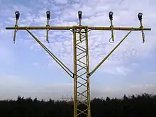 A localizer (LOC, or LLZ until ICAO standardisation[7]) is an antenna array normally located beyond the departure end of the runway and generally consists of several pairs of directional antennas.