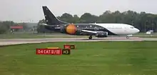 - ↑ ICAO/FAA only, not mentioned by the JAA(EASA),[14] not used on airports by May 2017, a plane would have to be towed to clear the runway[15]