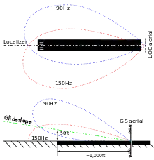 Many illustrations of the ILS concept often show the system operating more similarly to beam systems with the 90 Hz signal on one side and the 150 on the other. These illustrations are inaccurate; both signals are radiated across the entire beam pattern, it is their relative difference in the depth of modulation (DDM) that changes dependent upon the position of the approaching aircraft.