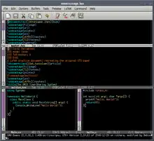 Unix programmers can combine command-line POSIX tools into a complete development environment, capable of developing large programs such as the Linux kernel and its environment.[13] In this sense, the entire Unix system functions as an IDE.[14] The free software GNU toolchain (including GNU Compiler Collection (GCC), GNU Debugger (GDB), and GNU make) is available on many platforms, including Windows.[15] The pervasive Unix philosophy of "everything is a text stream" enables developers who favor command-line oriented tools to use editors with support for many of the standard Unix and GNU build tools, building an IDE with programs like Emacs[16][17][18] or Vim. Data Display Debugger is intended to be an advanced graphical front-end for many text-based debugger standard tools. Some programmers prefer managing makefiles and their derivatives to the similar code building tools included in a full IDE. For example, most contributors to the PostgreSQL database use make and GDB directly to develop new features.[19] Even when building PostgreSQL for Microsoft Windows using Visual C++, Perl scripts are used as a replacement for make rather than relying on any IDE features.[20] Some Linux IDEs such as Geany attempt to provide a graphical front end to traditional build operations.