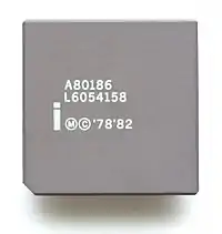 ![]() An Intel A80186 processor in a gray ceramic package | |