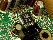 Like AC'97, HD Audio acts as a device driver, defining the architecture, link frame format, and programming interfaces used in the hardware of the host controller of the PCI bus and linking it to a codec used by a computer's software.[7] Configurations of the host controller (Chipset) are available from third-party suppliers, including Nvidia, VIA and AMD,[7] while codecs have also been provided by third-party suppliers including Realtek, Conexant, IDT, VIA, SigmaTel, Analog Devices, C-Media and Cirrus Logic.[8][9] AMD's TRX40 chipset was introduced in 2019 for use with Ryzen "Threadripper" CPUs, which provided the Realtek ALC1220 chip instead of the HD Audio interface. As a result, a separate USB or PCIe audio device was required to integrate HD audio codecs on TRX40 motherboards.[10]