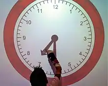 An interactive display board may be made by attaching an electronic multimedia device such as a tablet to a display board. Methods for attaching tablets to display boards include cutting a window into a display board and fixing a pocket behind the window to insert and hold the tablet,[25] pushing pins into the face of a display board with the tablet resting on the pins, attaching a lanyard to the tablet in order to hang it on the display board,[26] or using dual sided adhesive tape to attach the tablet to the display board.[27] Projex Boards manufactures a display board for tablets, with a pocket, easel and header board. The purpose of tablet display boards is to hold the tablet at eye level on the display board to facilitate better communication between audience and presenter. Some tablet interactive display boards have apertures for electrical cords[28] in the form of openings at the bottom of the display board.