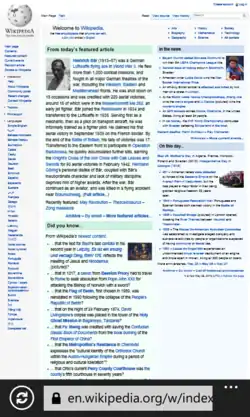 Screenshot ![]() Internet Explorer Mobile 10 in Windows Phone 8 showing Wikipedia main page | |