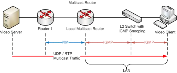 A network designed to deliver a multicast service using IGMP might use this basic architecture:
