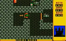 The player uses a joystick for control, using the firing button to fire the machine gun, which carries ammunition to allow for 99 shots. Nazis are killed when hit by two well-placed shots, although Nazis sitting at a table are killed with a single well-placed shot. The player can survive up to 50 shots from Nazi soldiers. Inside the castles, the player can discover crates which may contain art objects or explosives. The player can also find ammunition dumps, first-aid kits, and food in the castles.[1]