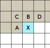 Usually only few of the spatially closest known samples are used for the extrapolation. Formats that operate sample by sample like Portable Network Graphics (PNG) can usually use one of four adjacent pixels (above, above left, above right, left) or some function of them like e.g. their average. Block-based (frequency transform) formats prefill whole blocks with prediction values extrapolated from usually one or two straight lines of pixels that run along their top and left borders.