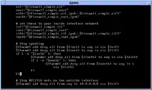 ipfirewall or ipfw is a FreeBSD IP, stateful firewall,[1] packet filter and traffic accounting facility. Its ruleset logic is similar to many other packet filters except IPFilter. ipfw is authored and maintained by FreeBSD volunteer staff members. Its syntax enables use of sophisticated filtering capabilities and thus enables users to satisfy advanced requirements. It can either be used as a loadable kernel module or incorporated into the kernel; use as a loadable kernel module where possible is highly recommended. ipfw was the built-in firewall of Mac OS X[2][3] until Mac OS X 10.7 Lion in 2011 when it was replaced with the OpenBSD project's PF. Like FreeBSD, ipfw is open source. It is used in many FreeBSD-based firewall products, including m0n0wall and FreeNAS. A port of an early version of ipfw was used since Linux 1.1 as the first implementation of firewall available for Linux, until it was replaced by ipchains.[4] A modern port of ipfw and the dummynet traffic shaper is available for Linux (including a prebuilt package for OpenWrt) and Microsoft Windows.[5] wipfw is a Windows port of an old (2001) version of ipfw.[6]