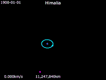 - The Himalia group shares an average inclination of 28°. They are confined dynamically (Δv ≈ 150 m/s). They are homogenous at visible wavelengths (having neutral colours similar to those of C-type asteroids) and at near infrared wavelengths[19]