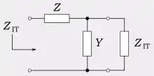 A simple generic L-circuit is shown in the diagram consisting of a series impedance Z and a shunt admittance Y. The iterative impedance of this network, ZIT, in terms of its output load (also ZIT) is given by,[4][5][6][7]