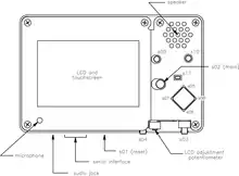 - Small 320 x 200 pixel LCD touchscreen for display and user input
