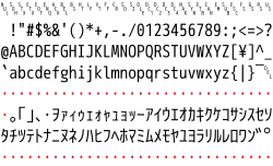 | Dx | ミ | ム | メ | モ | ヤ | ユ | ヨ | ラ | リ | ル | レ | ロ | ワ | ン | ゙ | ゚ |
