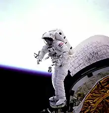 STS-51 Discovery, (September 12–22, 1993) was launched from and returned to make the first night landing at Kennedy Space Center, Florida. During the ten-day flight, the crew of five deployed the Advanced Communications Technology Satellite (ACTS) and the Orbiting and Retrievable Far and Extreme Ultraviolet Spectrometer on the Shuttle Pallet Satellite (ORFEUS/SPAS). Newman was responsible for the operation of the SPAS, was the backup operator for the RMS, and on flight day five conducted a seven-hour-five-minute spacewalk with Carl Walz. The extravehicular activity (EVA) tested tools and techniques for use on future missions. In addition to working with numerous secondary payloads and medical test objectives, the crew successfully tested a Global Positioning System (GPS) receiver to determine real-time Shuttle positions and velocities and completed a test routing Orbiter data to on-board laptop computers. STS-51 made 158 orbits of the Earth, traveling 4.1 million miles in 236 hours and 11 minutes.