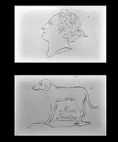 The draughtsman is modelled as a young child, and is capable of drawing four different images: a portrait of Louis XV, a royal couple (believed to be Marie Antoinette and Louis XVI), a dog with "Mon toutou" ("my doggy") written beside it, and a scene of Cupid driving a chariot pulled by a butterfly.