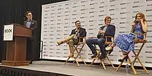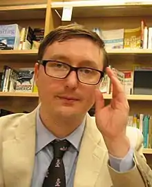 ![]() Hodgman at BookExpo America promoting Medallion Status in 2019 | |