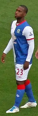 After impressing during the club's pre-season schedule, Hoilett made his debut for Blackburn in the opening day of the 2009–10 season as a late substitute in place of El Hadji Diouf during a 2–0 defeat to Manchester City.[19] He was named in the starting line-up for the team's following match and scored his first competitive goal for Rovers in a 3–1 League Cup win over Gillingham on 25 August 2009.[20] His performances in the early stages of the campaign prompted the club to open talks over a contract extension as Hoilett was in the final year of his original deal.[21] Hoilett was involved in Blackburn's dramatic League Cup win against Chelsea on 2 December 2009. Coming on as a second half substitution, he won a stoppage time penalty which Benni McCarthy converted to put Rovers 3–2 up, before Paulo Ferreira equalised in the 122nd minute. However, Hoilett converted the fifth penalty to help Rovers to a 4–3 shoot-out win and a place in the semi-finals.[22] He then started his first league match on 12 December against Hull City, playing the full 90 minutes in a 0–0 draw at the KC Stadium.[23] On 25 February 2010, with his contract due to expire in June 2010, Hoilett ended speculation regarding his future at the club, by signing a new two-and-a-half-year deal with Blackburn, keeping him at the club until the summer of 2012.[24] He finished the season having made 27 appearances in all competitions, scoring once.[25]