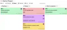 Kanboard is a project management open source software application that uses a Kanban board to implement the Kanban process management system. Features[2] include a minimal drag-and-drop web user interface, a command line interface[3] and ability to automate repetitive tasks. Kanboard uses SQLite by default and can use other SQL databases. Various plugins by external authors provide additional customisation and expansion capabilities, e.g. custom CSS themes to change the default appearance.