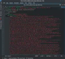 Kate is a source code editor that features syntax highlighting for over 300 file formats with code folding rules.[12][13] The syntax highlighting is extensible via XML files.[14] It supports UTF-8, UTF-16, ISO-8859-1 and ASCII encoding schemes and can detect a file's character encoding automatically. Kate offers code completion and reference finding for various programming languages through its Language Server Protocol Client plugin. The default configuration supports C, C++, D, Fortran, Go, Latex, Python, Rust, and OCaml.[15]