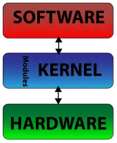 For example, to show the user something on the screen, an application would make a request to the kernel, which would forward the request to its display driver, which is then responsible for actually plotting the character/pixel.[6]
