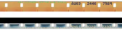 - Visible ink is sometimes used to imprint on the edge of the film – again in manufacturing – at the time of perforations. The ink, which is not affected by photographic chemicals, is normally printed onto the base surface of the film. The numbers are visible on both the raw stock (unexposed) and processed (exposed and developed) film. This method is primarily used for black & white negative film.