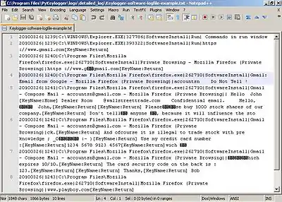 Keystroke logging, often referred to as keylogging or keyboard capturing, is the action of recording (logging) the keys struck on a keyboard,[1][2] typically covertly, so that a person using the keyboard is unaware that their actions are being monitored. Data can then be retrieved by the person operating the logging program. A keystroke recorder or keylogger can be either software or hardware.