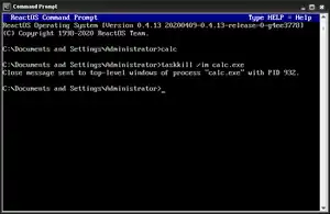 taskkill command on ReactOSThe ReactOS implementation is based on the Windows variant. It was developed by Andrew Riedi, Andrew Nguyen, and He Yang. It is licensed under the LGPLv2.1 or later.[8]