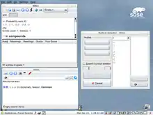Kiten is a Japanese Kanji learning tool and reference for the KDE Software Compilation, specifically, in the kdeedu package.[2] It also works as a Japanese-to-English and English-to-Japanese dictionary. The user can input words into a search box, and all related Kanji are returned with their meaning and part of speech. Kanji can be filtered by rarity and part of speech. A list of Kanji is also available which sorts characters by grade level and stroke number. Selecting one shows its Onyomi, Kunyomi, and meanings. Users can also add Kanji to their "learn list" and get simple flashcard quizzes where the Kanji is displayed along with possible meanings to choose from.[3]