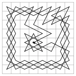 A tour reported in the fifth book of Bhagavantabaskaraby by Bhat Nilakantha, a cyclopedic work in Sanskrit on ritual, law and politics, written either about 1600 or about 1700 describes three knight's tours. The tours are not only reentrant but also symmetrical, and the verses are based on the same tour, starting from different squares.[8] Nilakantha's work is an extraordinary achievement being a fully symmetric closed tour, predating the work of Euler (1759) by at least 60 years.