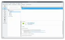 ![]() KMail using the default layout: the folder list on the left side and the preview pane below the message list (top right) | |