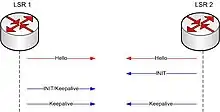 Label Distribution Protocol (LDP) is a protocol in which routers capable of Multiprotocol Label Switching (MPLS) exchange label mapping information. Two routers with an established session are called LDP peers and the exchange of information is bi-directional. LDP is used to build and maintain label-switched path (LSP) databases that are used to forward traffic through MPLS networks.