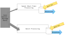 Lambda architecture describes a system consisting of three layers: batch processing, speed (or real-time) processing, and a serving layer for responding to queries.[3]: 13 The processing layers ingest from an immutable master copy of the entire data set. This paradigm was first described by Nathan Marz in a blog post titled "How to beat the CAP theorem" in which he originally termed it the "batch/realtime architecture".[4]