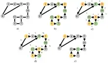 Yo-yo (algorithm) is a minimum finding algorithm consisting of two parts: a preprocessing phase and a series of iterations.[16] In the first phase or setup, each node exchanges its id with all its neighbours and based on the value it orients its incident edges. For instance, if node x has a smaller id than y, x orients towards y. If a node has a smaller id than all its neighbours it becomes a source. In contrast, a node with all inward edges (i.e., with id larger than all of its neighbours) is a sink. All other nodes are internal nodes.