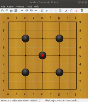 Leela is a computer Go software developed by Belgian programmer Gian-Carlo Pascutto,[1][2][3] the author of chess engine Sjeng. It won the third place for 19x19 board Go and the second place for 9x9 board Go at the Computer Olympiad in 2008,[1][4] and won the eighth place in the 1st World AI Go Tournament in August 2017.[5] According to its website, it has "Strength over 9 dan on 19 x 19, depending on hardware". The program was named "Leela" because the author wanted a pleasant female name that contrasted with the prevailing style at the time, typified by names like "Shredder", "Tiger", and "Rebel".