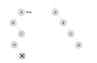 Knowing the shortest path to the nearest missing leaf in the subtree rooted at x is exactly of s(x), every node at depth s(x)−1 or less has exactly 2 children since s(x) would have been less if not. Meaning that the size of the tree rooted at x is at least . Thus, s(x) is at most , m being the number of nodes of the subtree rooted at x.[1]