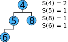The s-value (or rank) of a node is the distance from that node to the nearest empty position in the subtree rooted at that node. Put another way, the s-value of a null child is implicitly zero. Other nodes have an s-value equal to one more the minimum of their children's s-values. Thus, in the example at right, all nodes with at least one missing child have an s-value of 1, while node 4 has an s-value of 2, since its right child (8) has an s-value of 1. (In some descriptions, the s-value of null children is assumed to be −1.[4])