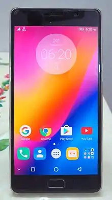 The main point which makes the P2 stand out, is that it is powered by a 5100 mAh battery, one of the highest-capacity batteries in its class at the time for the price.[7] It is claimed to give up to three days of usage, in a normal use case scenario. The device also has a physical power saver switch, which extends the battery life. The P2 is also able to reverse charge another device. The phone works with a 24W quick charger that can rapidly charge the battery. Rapid charge function works when on charge with the screen off. It comes with some pre-installed apps such as Google Maps, Hangouts, Play Music, Play Movies, YouTube, Gmail, News & Weather, Photos, Drive, Chrome and Play store.
