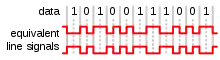 - the line-coded signal can directly be put on a transmission line, in the form of variations of the voltage or current (often using differential signaling).