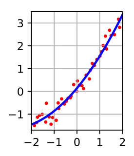 - Polynomial fitting: models are polynomials in an independent variable, x: