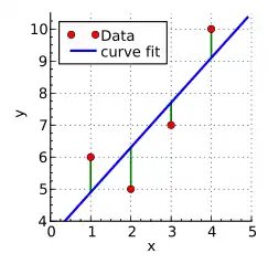A hypothetical researcher conducts an experiment and obtains four data points: and (shown in red in the diagram on the right). Because of exploratory data analysis or prior knowledge of the subject matter, the researcher suspects that the -values depend on the -values systematically. The -values are assumed to be exact, but the -values contain some uncertainty or "noise", because of the phenomenon being studied, imperfections in the measurements, etc.