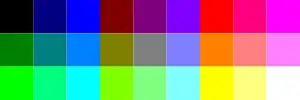 This 4-bit RGBI schema is used in several platforms with variations, so the table given below is a simple reference for the palette richness, and not an actual implemented palette. For this reason, no numbers are assigned to each color, and color order is arbitrary.