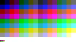 Sample image Color test chart 3-bit, 8-color palette 6-bit, 64-color palette