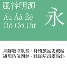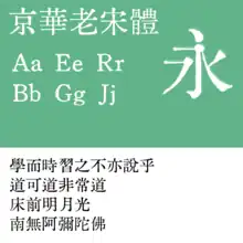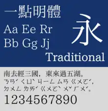- Traditional Chinese (Taiwan, using education standard: Standard Form of National Characters, Chinese: 國字標準字體)