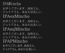 | IPAex Minchō | IPAex明朝 | [F] IPA font licence | Part of IPA font series developed by Information-technology Promotion Agency, Japan. Released from here.[13] | ||