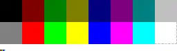 0 — black 8 — gray 1 — maroon 9 — red 2 — green 10 — lime 3 — olive 11 — yellow 4 — navy 12 — blue 5 — purple 13 — fuchsia 6 — teal 14 — aqua 7 — silver 15 — white