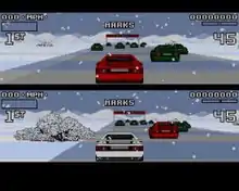 While racing, the players must manage their fuel supply, occasionally visiting the pit stop for refuelling. Also apart from overtaking the other cars, the racers must avoid various hazards and obstacles. These are dependent on the scenery the track is located in, and include slippery road on the winter courses, road blocks, slippery puddles and wooden logs.