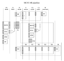 ![]() MCST R1000 core | ![]() MCST R1000 pipeline | ![]() MCST R1000 diagram | ![]() ccNUMA multiprocessor system with four MCST R1000 microprocessors |
