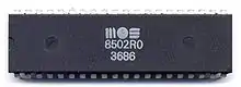The MOS Technology 8502 is an 8-bit microprocessor designed by MOS Technology and used in the Commodore 128 (C128). It is an improved version of the MOS 6510 used in the Commodore 64 (C64). It was manufactured using the HMOS process, allowing it to have higher transistor density, and lower cost, while dissipating less heat. The 8502 allows the C128 to run at double the clock rate of the C64 with some limitations.