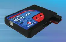 The MPLAB REAL ICE (In-Circuit Emulator) is a high-speed emulator for Microchip devices. It debugs and programs PIC and dsPIC microcontrollers in conjunction with the MPLAB IDE, while the target device is "in-circuit".[6][7] The REAL ICE is significantly faster than the ICD 2, for programming and debugging.[8][9]